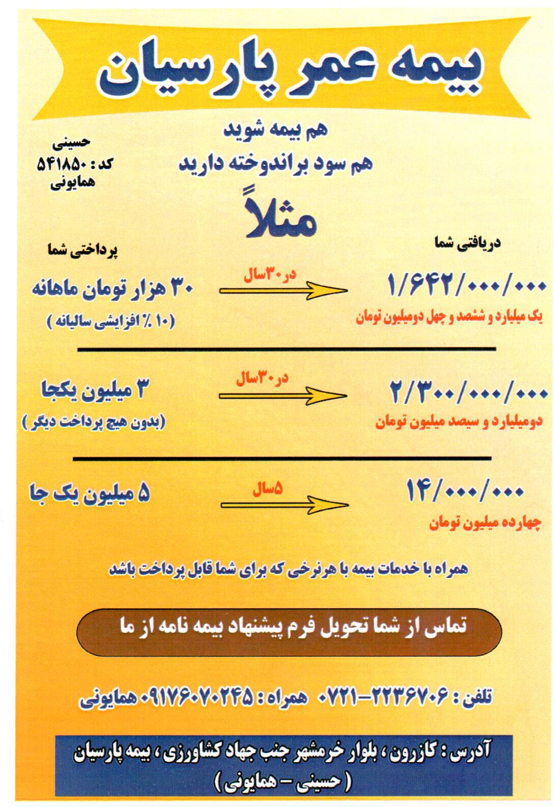 بیمه پارسیان کازرون کد-541850